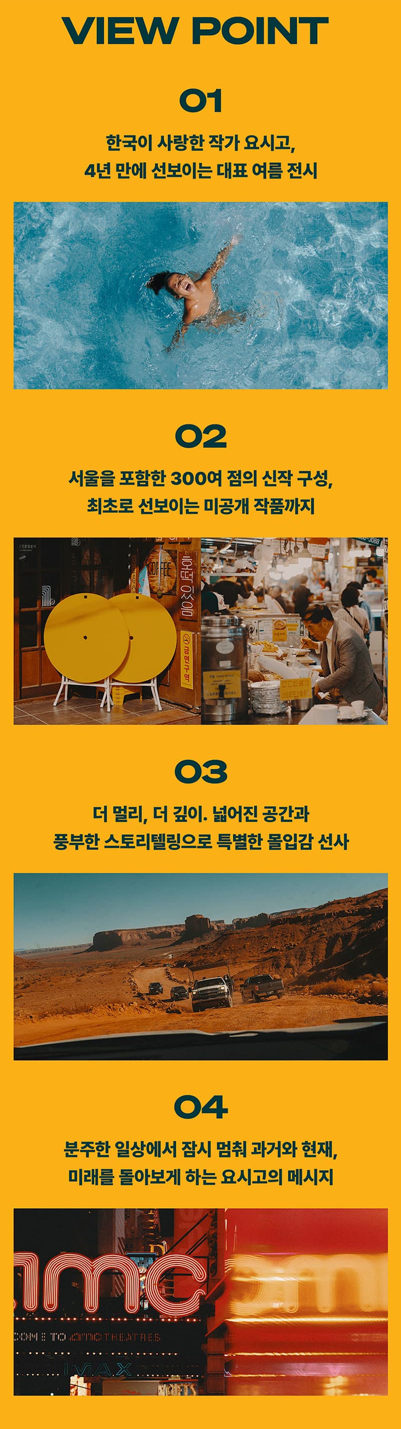 300여 점의 신작으로 이루어지며 요시고 특유의 따뜻한 색감과 빛의 활용을 통해 일상의 찰나 속 마법 같은 순간을 만날 수 있습니다.